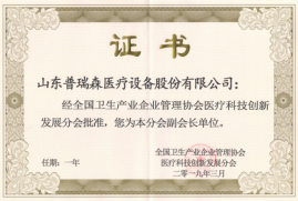 ——熱烈祝賀山東普瑞森醫(yī)療設(shè)備股份有限公司被評(píng)為副會(huì)長單位